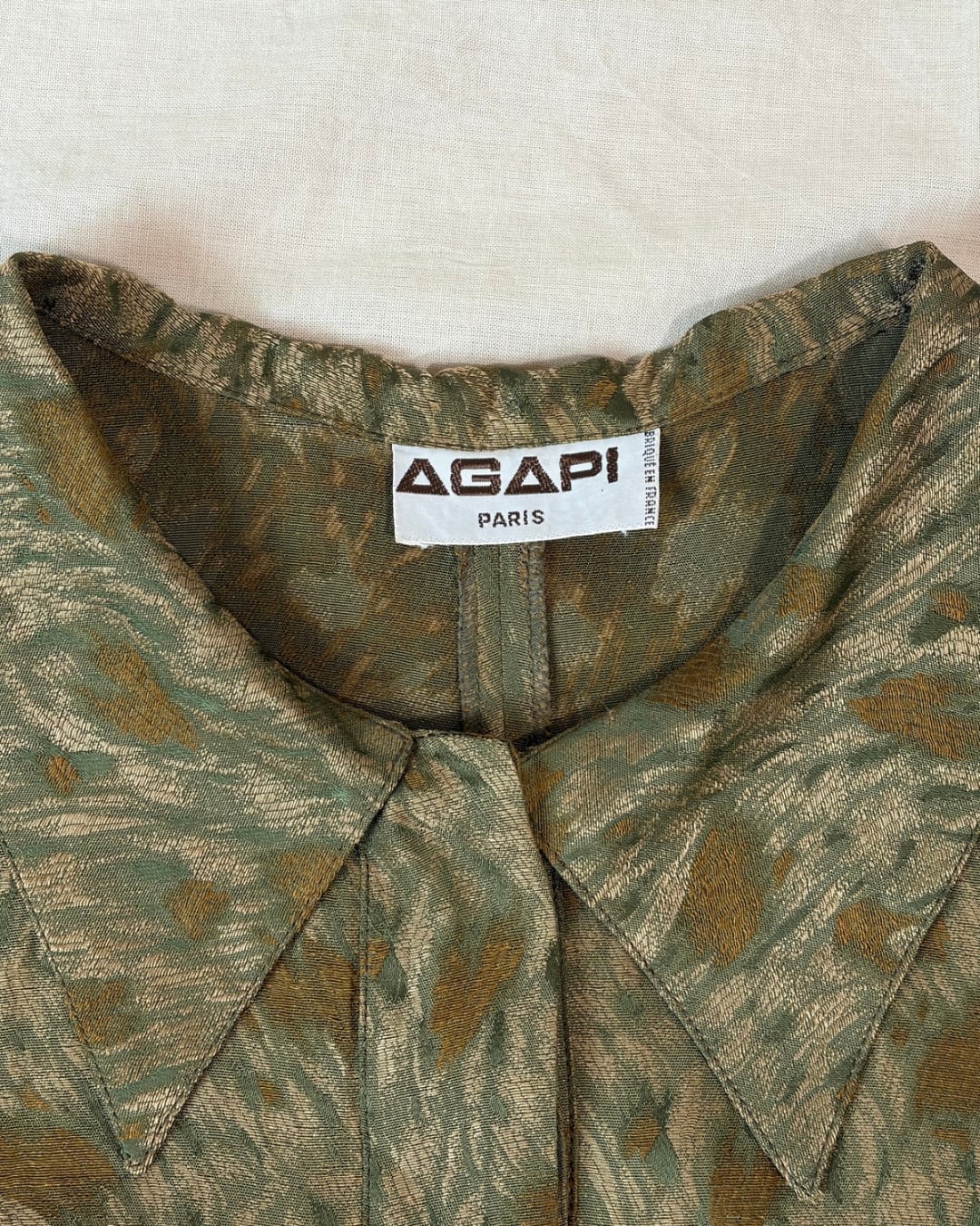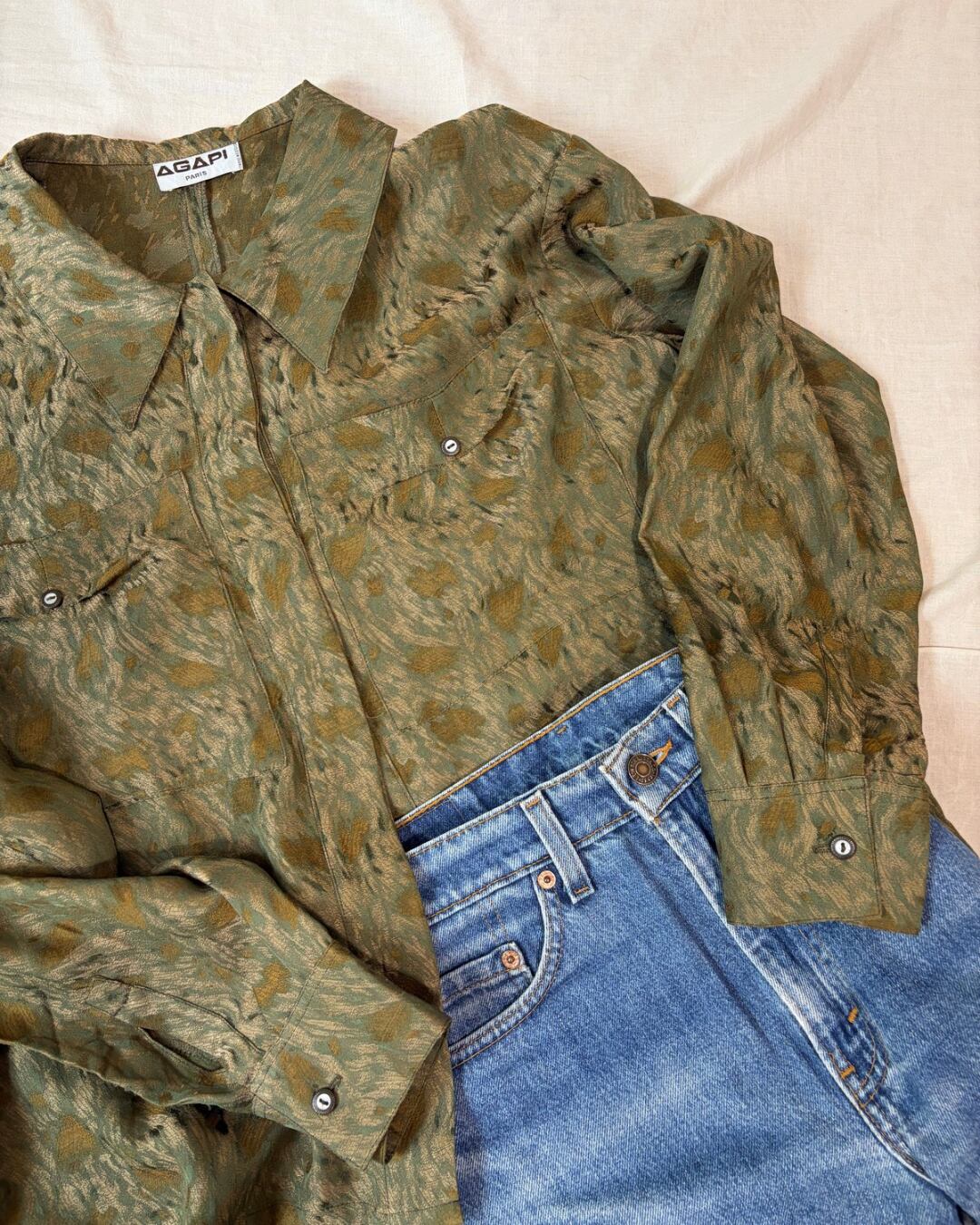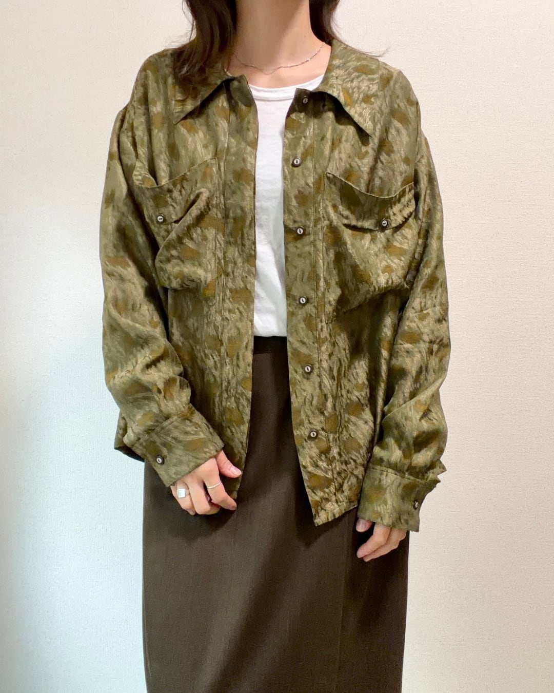 シックな雰囲気のカモフラージュ柄が素敵なデザインシャツです。