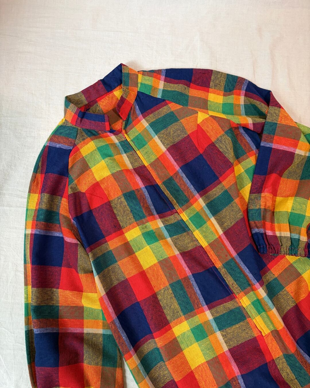 当時のハッピーなムード溢れる、カラフルなマドラスチェック柄。