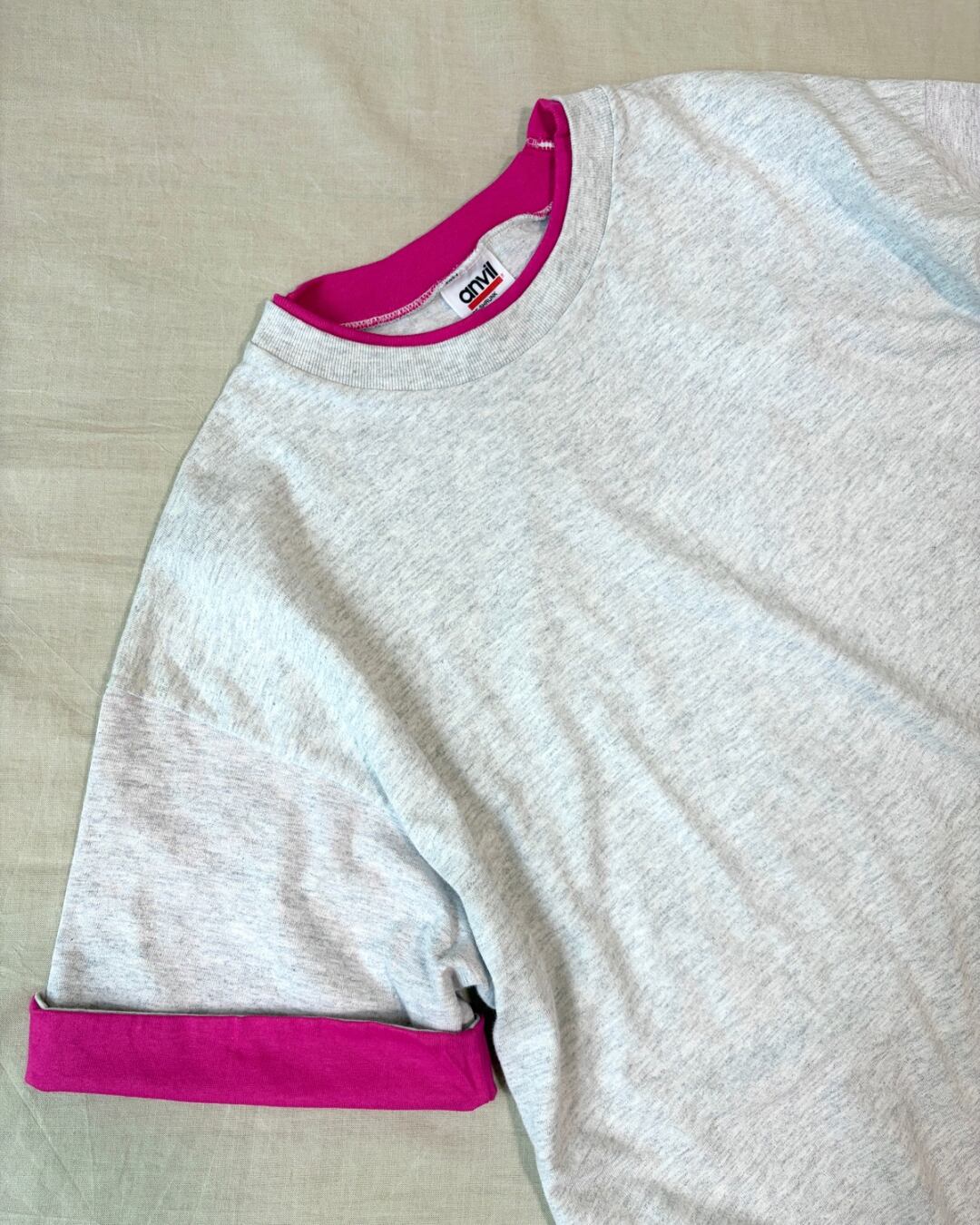 ピンク × ライトグレーの配色が素敵な無地Tシャツです。