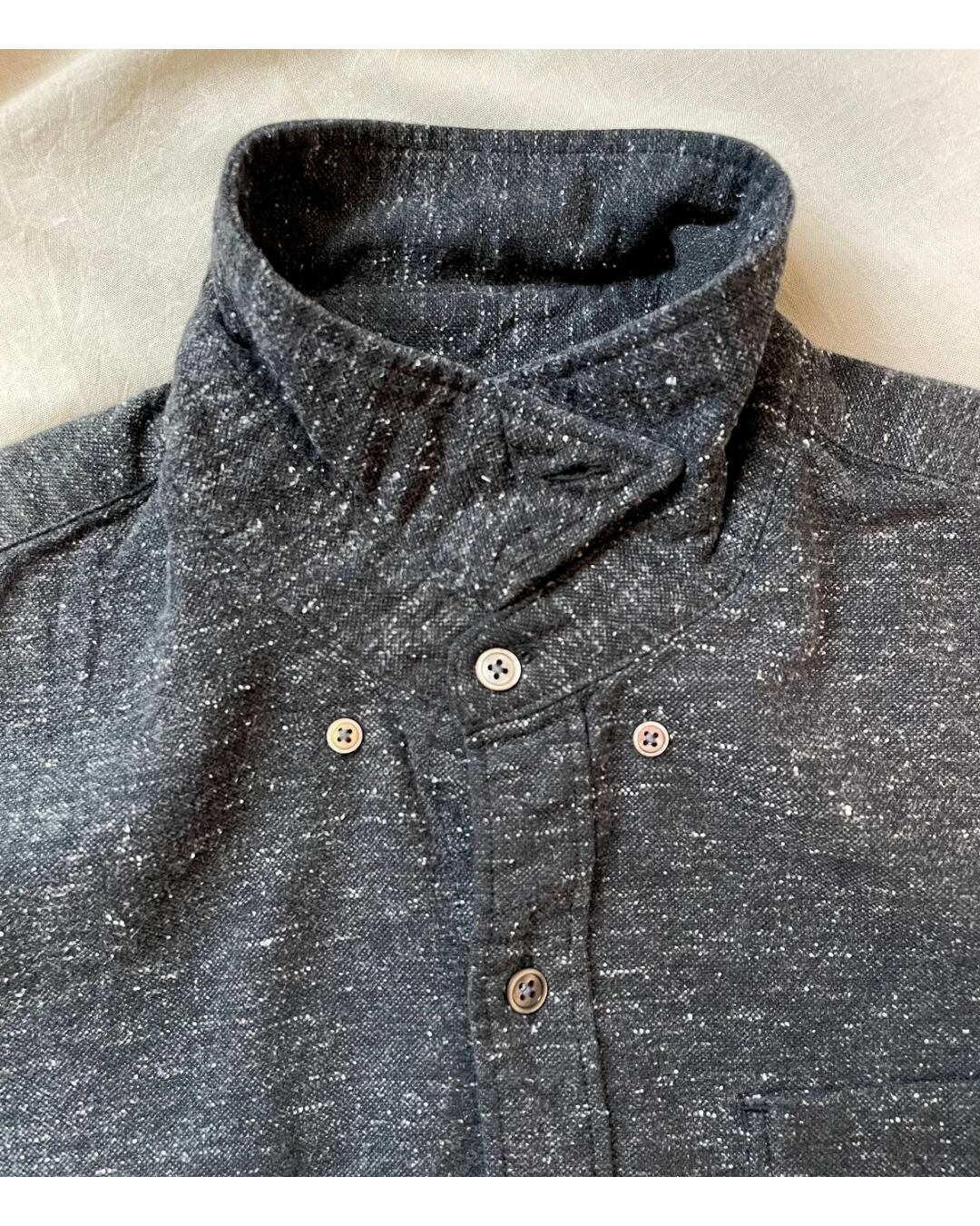 やや厚地のしっかりとした素材で、黒地に白の横糸がチラチラと見えるメランジ調の生地が使われています。
